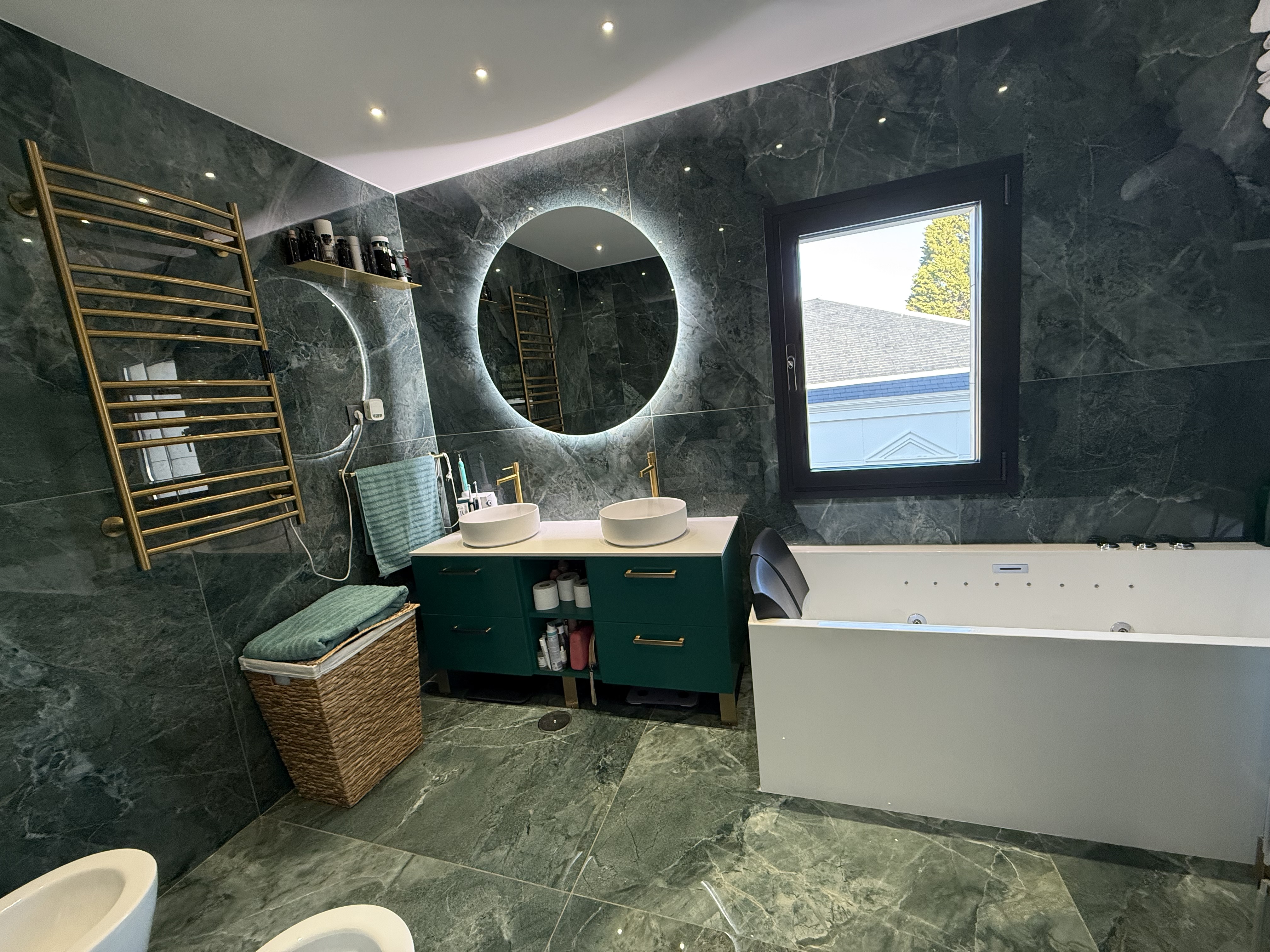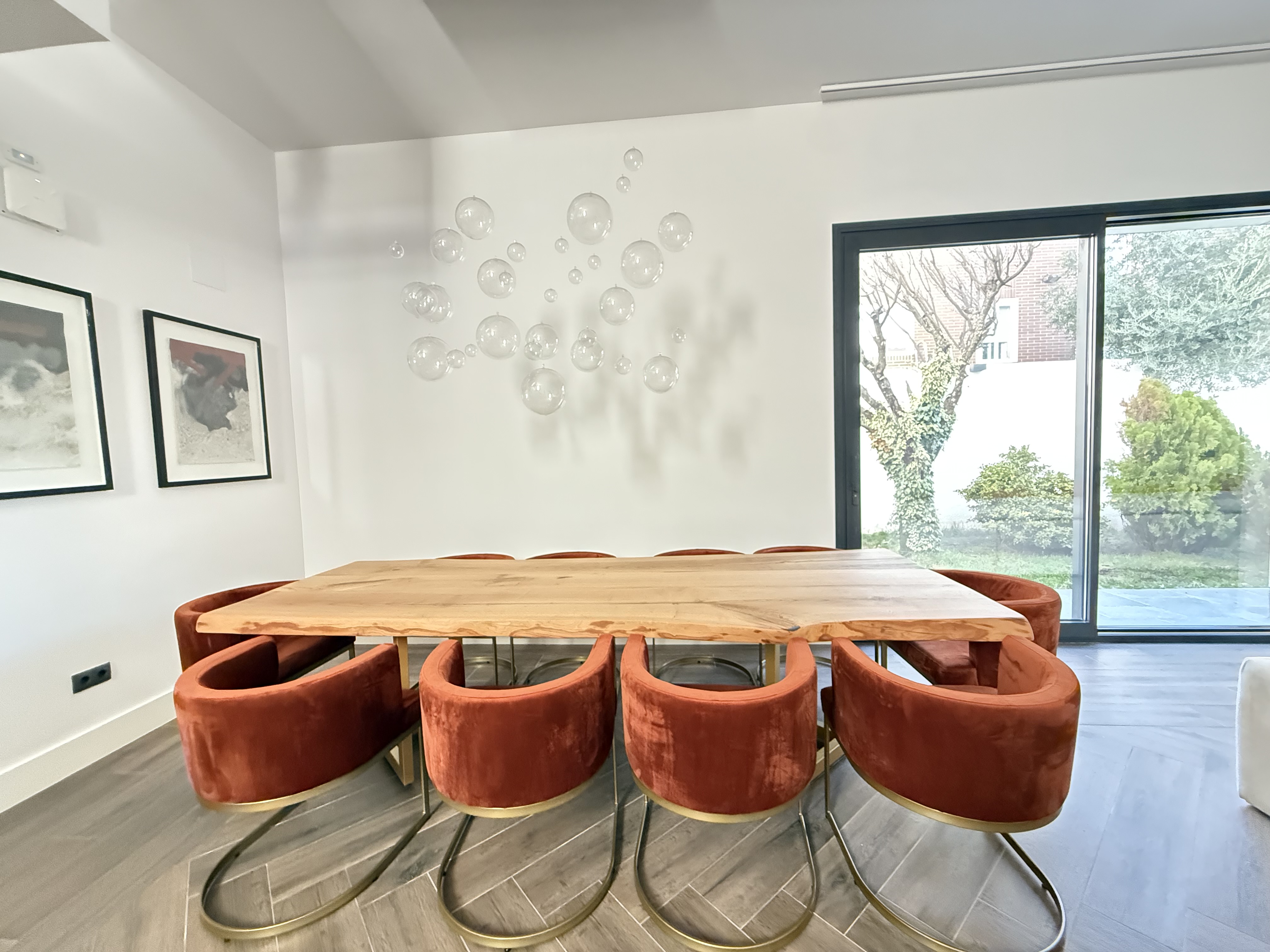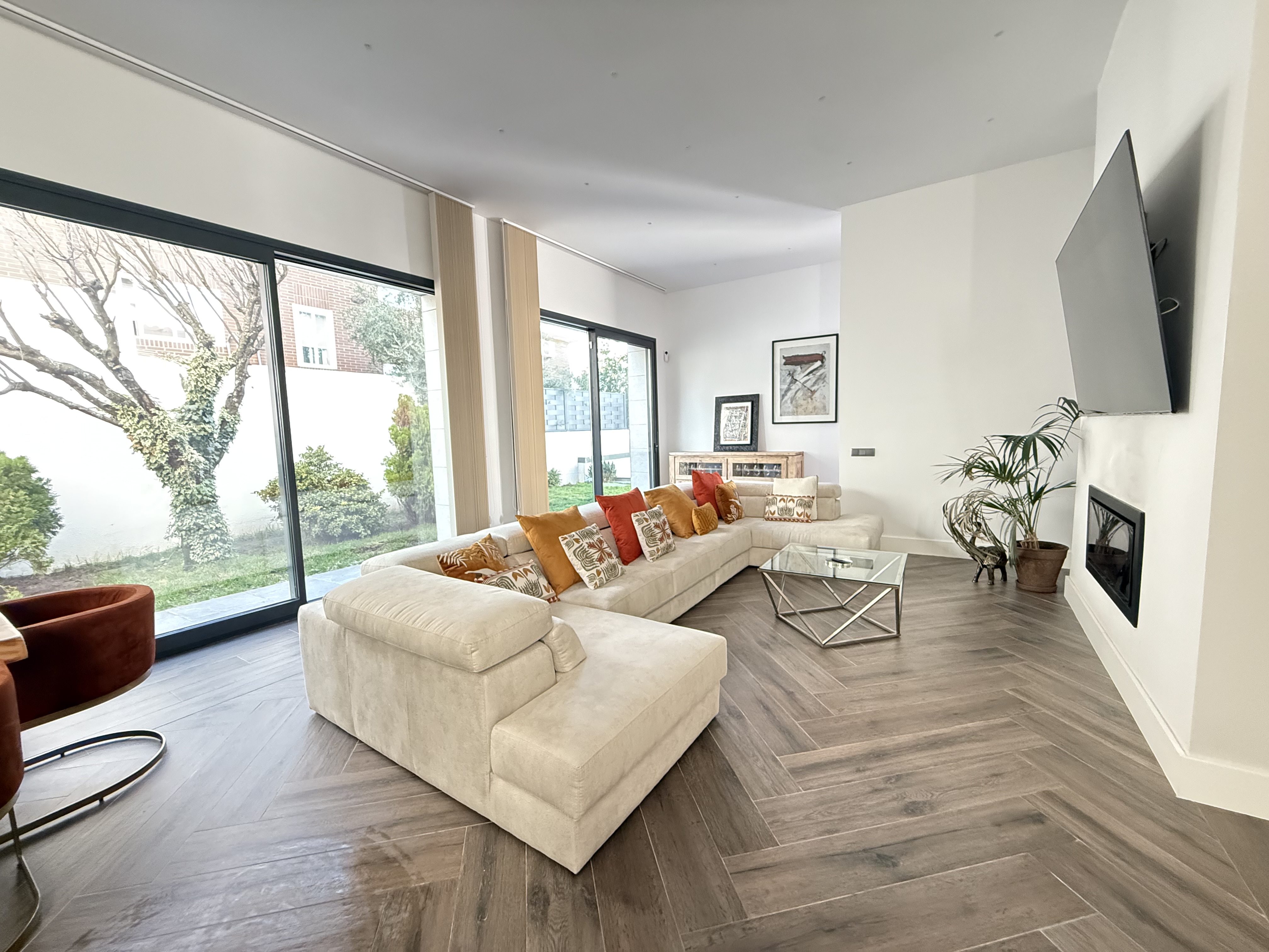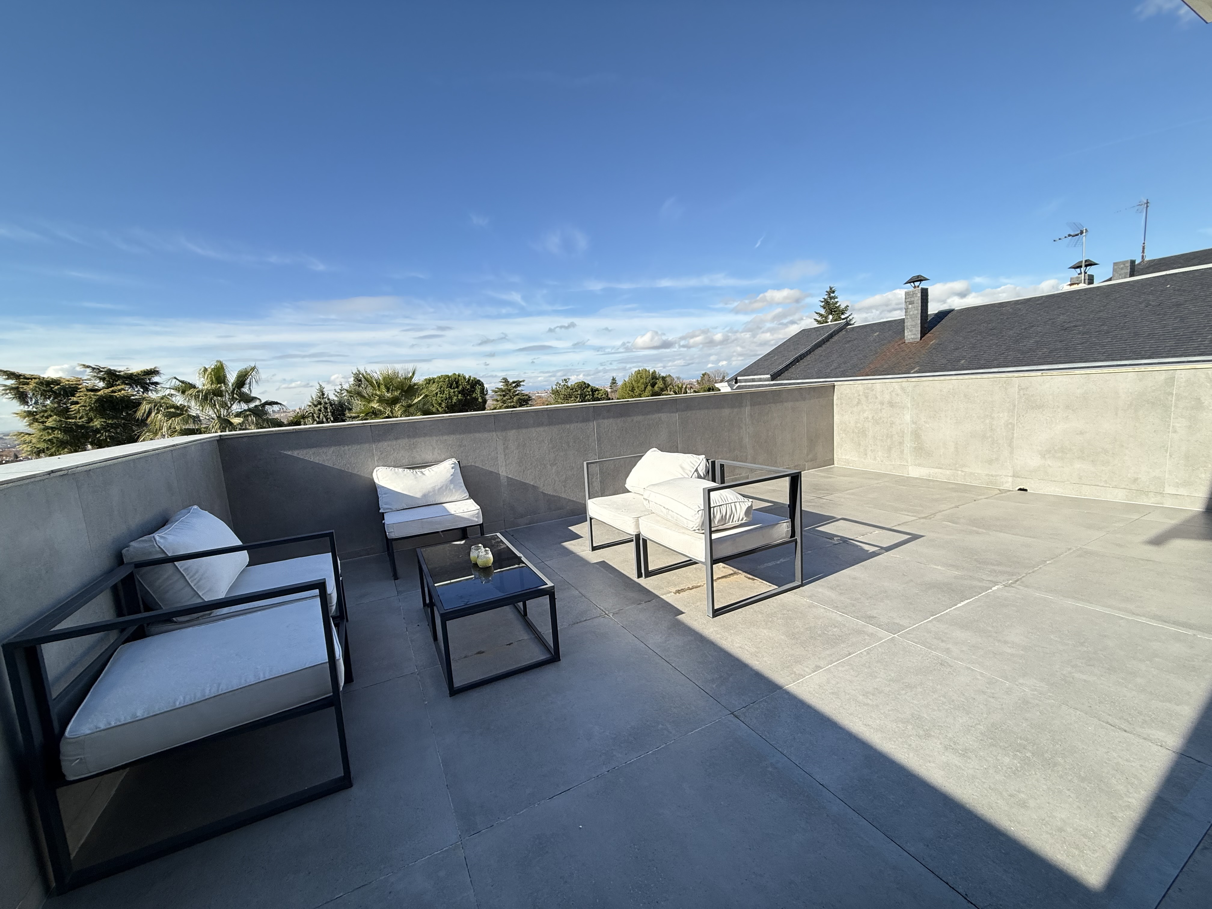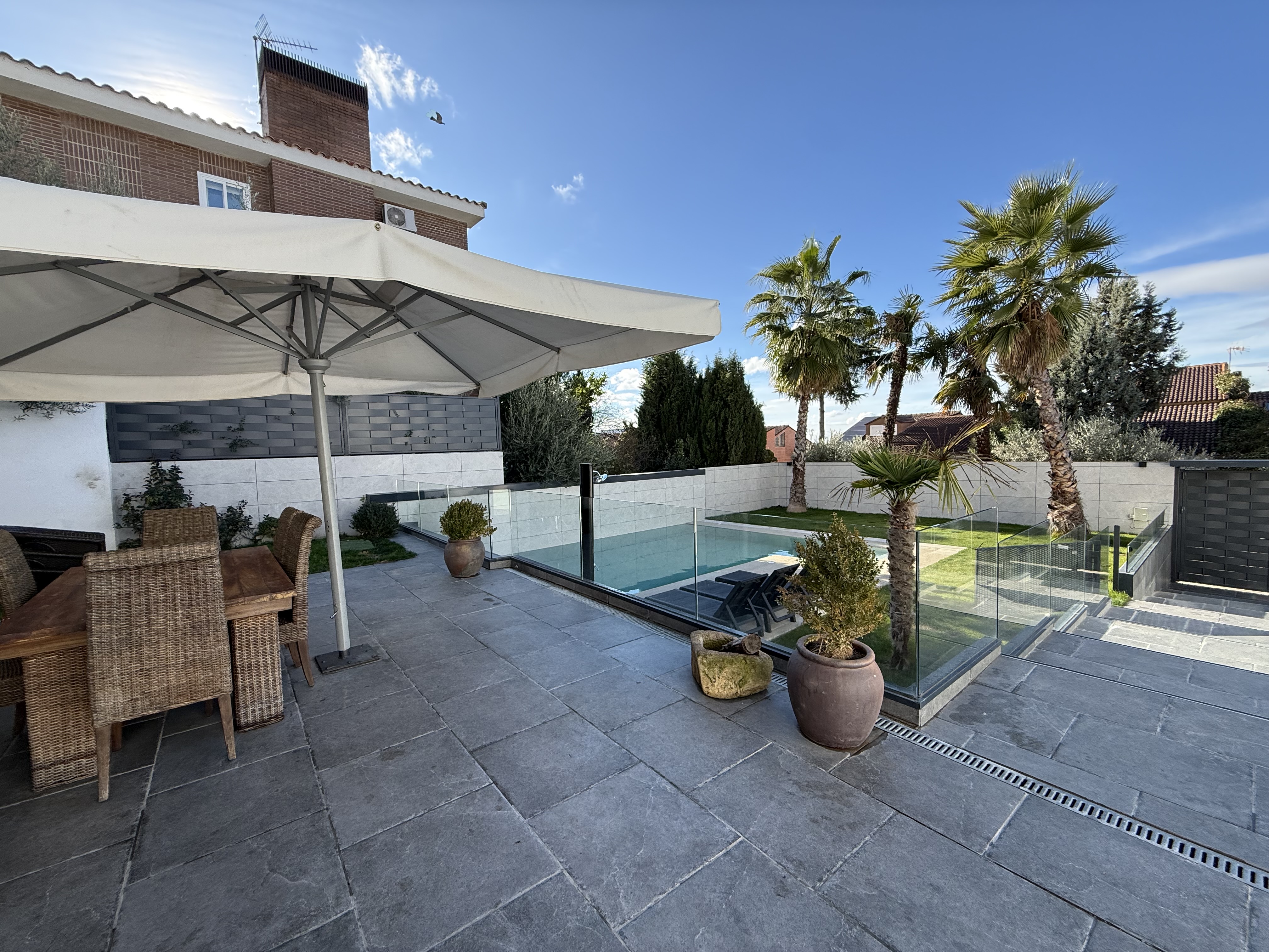 Chalet independiente de 305 m² construidos en parcela de 890 m² en Rivas, con 4 dormitorios con baño y vestidor privado. Destaca la habitación principal con terraza y otra terraza de 30 m², además de ascensor interior. Cuenta con 24 placas solares, sistema de aerotermia y piscina salina. Dispone de entrada para hasta 5 coches y salida directa al Cerro de Rivas. Vivienda de diseño contemporáneo con altas calidades y gran eficiencia energética.